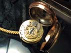 ケースは金無垢のやや薄いオニオンケースで透かし彫り彫刻が施されており、内蔵されたベルの音が良く響く。