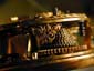 主要部品は0.5mmの真鍮板から叩き出し、ヒンジ、プッシュペンダント等は真鍮丸棒とパイプから切削して、ハンダで固定し、最後に18K滅金して仕上げた。