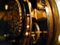 写真N0.4-4は輪列の写真で、運針用のフュジー付き輪列とアワー/クォータ用それぞれの時打ち駆動用の輪列が1つづつと、アワー用のハンマーが1つ、クォータ用に2つのハンマーなどが見える。 |