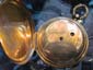 14金ハンターケースの中央の深いブルーエナメルは地金に彫刻が施されたギョー シェエナメルになっている。