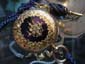 光があたると美しい模様が深い青の底に輝き、ローズカットダイヤとともに神秘的な 泉を思わせる。