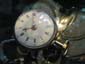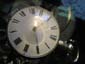 針が紛失しているが白いエナメルにアラビア数字のアワー/ミニッツ表示。