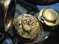 右に見えるブルスチ−ル製のディスクを鍵で操作する事により 反対側に見える指針が連動して上下する変わったレギュレ−タ−を持つ。