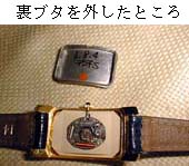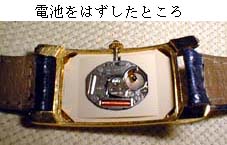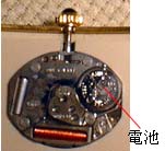 裏ブタが開きましたら、ムーブメントが落ちてくることがありますので、時計の裏ブタ側を上にして注意しながら外して下さい。 ムーブメントをよく見てみると、電池がセットされているのが見えるはずです。 ほとんどの場合、電池ははめ込んでセットされています。 電池の向き(プラスとマイナス)を確認して下さい。 新品電池に交換する際に向きを間違えないようにするためです。 ※注