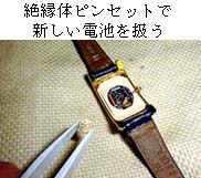 この時、新品の電池を手で触ると放電してしまうことがあります。 また、金属製工具で触っても放電してしまうことがあります。 新品電池は、絶縁体ピンセット、またはピンセットの先にビニールテープを巻き付けて絶縁するなどして取り扱ってください。 注意深く新品電池を向きに注意しながら押し込んでください。